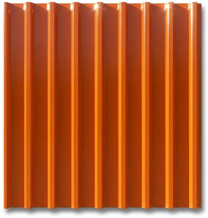 Описание: Профнастил марки С20 — это стеновой профлист с высотой волны 20 мм. В основе профиля — трапециевидные волны, сужающиеся к гребню. Характеристики: Полная ширина листа — 1150 мм. Полезная ширина (без учёта нахлёста) — 1100 мм. Длина — от 0,5 до 12 м. Толщина — от 0,3 до 0,7 мм.
